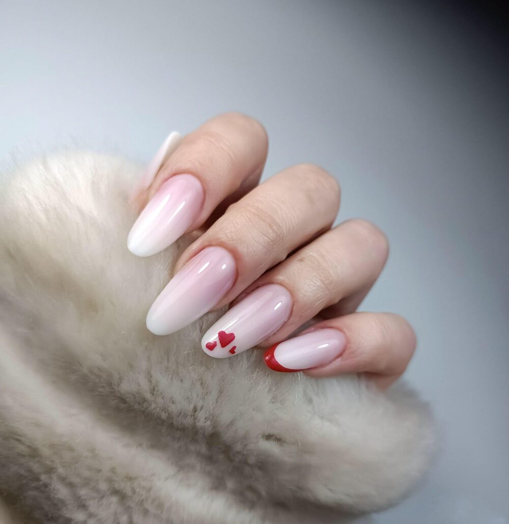 • Stendere a smalto il Gel Builder Milky Pink sull’ unghia naturale/artificiale ed effettuare la bombatura, poi polimerizzare 60″ LED / 120″ UV